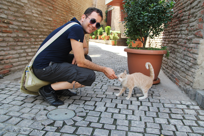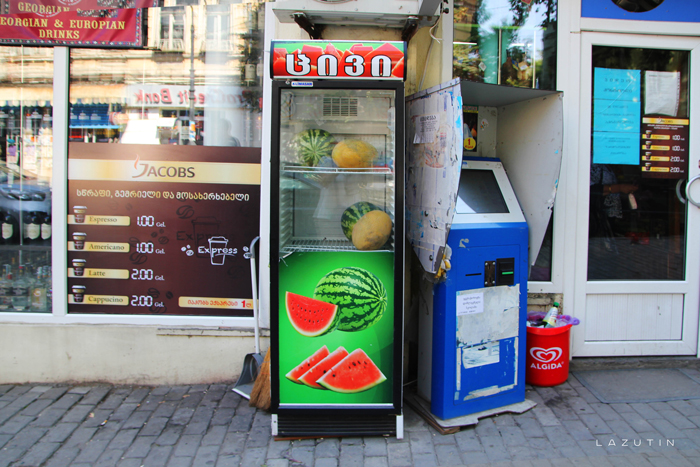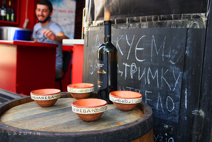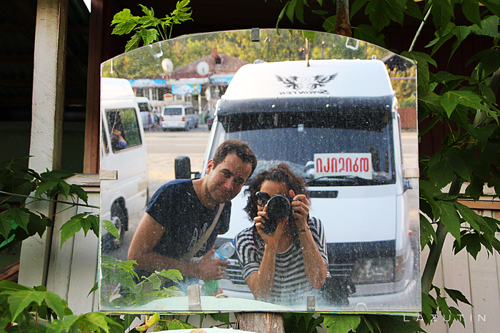 Пока у водителя маршрутки был перекур, мы познакомились с местным жителем. Он оказался украинцем из Харькова. Посоветовал в этой лавке купить лепешку. Это была наша первая еда в Грузии.